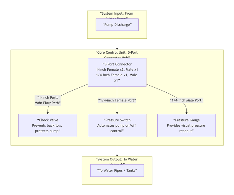 Если в вашей системе уже есть отдельный обратный клапан или если вам вообще не нужна функция обратного клапана и вам просто нужен надежный «коллектор», то 5-портовый разъем является наиболее экономичным и простым вариантом. Его ценность заключается в упрощении разводки трубопроводов и уменьшении количества отдельных фитингов. Конкретные сценарии включают в себя: